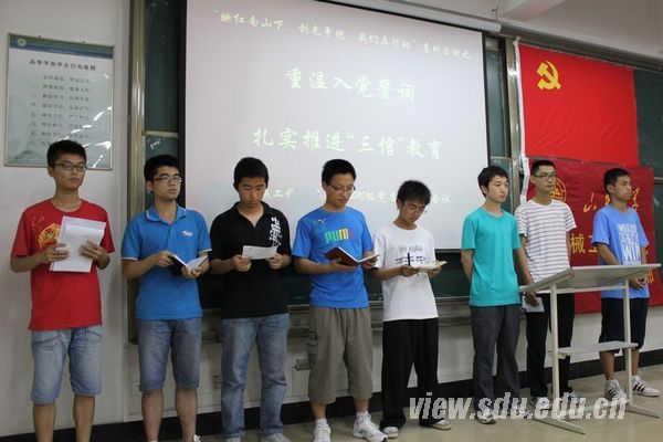 [本站讯]5月8日晚,机械工程学院在兴隆山校区举行了以“重温入党誓词,扎实推进‘三信’教育”为主题的交流会,会议主要学习讨论了胡锦涛总书记在纪念中国共产主义青年团成立90周年大会上发表的重要讲话精神,围绕“三信”教育展开深入交流。