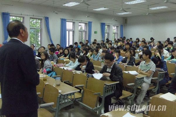 在晚上的讲座中,学院的5位教授、副教授轮番上场,对各自的专业方向进行了精彩阐述。白增亮教授对免疫学方向作了深入介绍,并指出免疫学是当今社会研究的前沿研究领域之一。学院副院长李越中教授为大家介绍了学院微生物学的发展概况,作为山东大学的强势学科,微生物学依托学院微生物国家重点实验室进行的研究目前处于国际领先水平。王金星教授从生物化学概念定位入手,介绍了这门学科的发展方向和培养方案。冯力骏教授向同学们介绍了动物与发育生物学的发展现状,并着重介绍了动物与发育生物学研究的内容和研究技术。王禄山副教授介绍了生物信息学的概况及发展历程,他指出,生物信息学作为一门新兴交叉学科有着独特的研究前景。