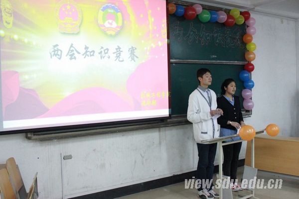 比赛由机械学院学生会秘书长何星,学生会副主席范仁斌、王滕、刘孟竺,社团联合会主席李浩担任评委。来自机械工程学院11级各专业的代表队围绕“两会”的竞赛主题,展开了激烈的比拼。