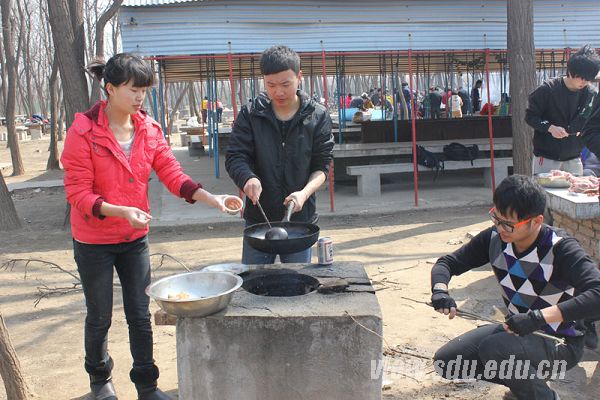 早上,全体成员在主楼广场集合,随后开往活动目的地——济南市黄河森林公园。经过将近一小时的车程,一行人抵达了目的地,并进入公园,在树林中开始了烤肉环节。大家各司其职,有的负责切肉,有的负责串肉,有的负责生火,一切都有条不紊地进行着,大家在欢声笑语中享受着烤肉带来的快乐。午餐过后,大家开始了各种娱乐活动。其中“荡秋千”是最受欢迎的娱乐项目,有的是单人组,有的是双人组,大家似乎在在荡秋千的过程中找到了自己童年的快乐。娱乐过后,大家走到黄河岸边,在“黄河母亲”的见证下,在河滩上留下自己的青春誓言和对未来的憧憬。最后,全体团员合影留念。