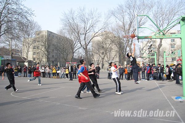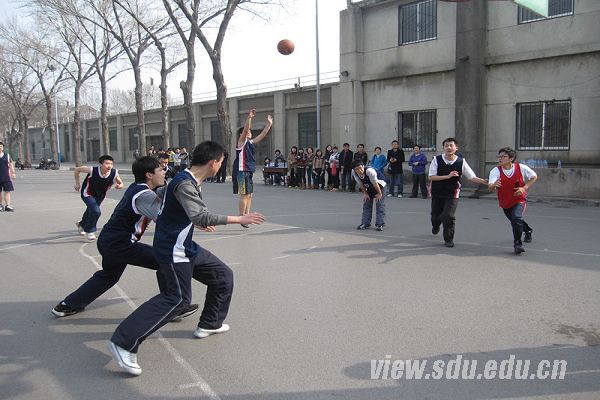 [本站讯]3月17日,医学院“新生杯”篮球赛在趵突泉校区篮球场拉开战幕。本次篮球赛由医学院学生会体育部主办,吸引了医学院2008至2011级四个年级的诸多班级组队参与。