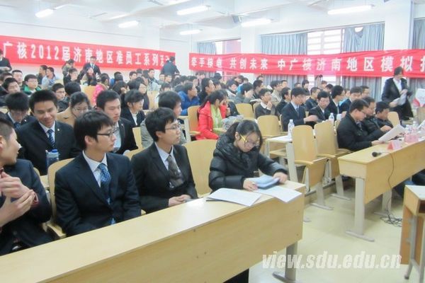 [本站讯]3月10日晚,由2012届济南地区准员工组织主办、能动学院承办的中国广东核电集团模拟招聘会在兴隆山校区举行。能动学院党委副书记史良君、就业指导老师任伟参加招聘会,济南地区部分准员工优秀代表担任模拟面试会的面试官。