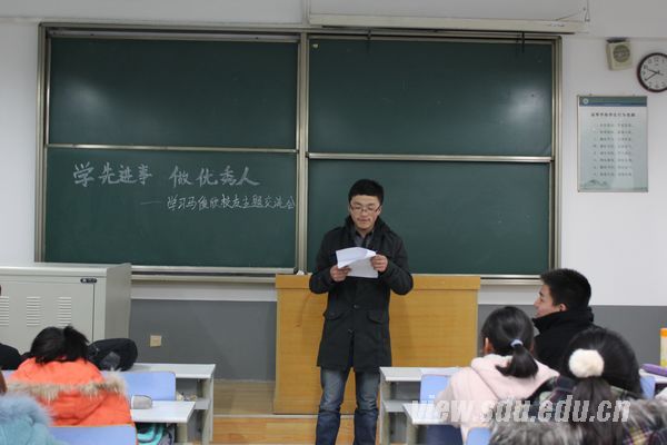 2011级哲学班开展了“学习马俊欣校友”义工服务活动,为老年公寓的老人们带去了温暖;2009级社会学1班开展“向马俊欣校友学习”主题团日活动,提炼了“坚强的品格、执着的追求、敬业的精神、感恩的心态、扎实的作风”的马俊欣精神;2010级文史哲基地班为同学们播放了视频短片,让同学们更加形象地体会到马俊欣校友的乐观心态。其他各团支部也开展了主题鲜明的学习活动,分别以“汲取榜样的力量,开创自己的生活”、“钢铁硬汉,山大之荣”、“学习典型,创新生活”、“向马俊欣校友学习,争做优秀山大人”等为主题,通过材料学习、交流讨论、视频播放等形式,学习马俊欣校友身残志坚的奋斗事迹、乐观向上的精神风貌和兢兢业业的工作态度。活动中,同学们积极参与,踊跃发言,表示要用马俊欣校友的精神鞭策自己,珍爱生命、感恩社会、努力学习、敬业工作。