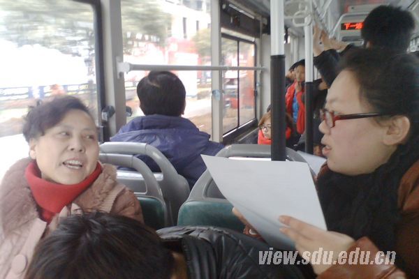 活动中,团队先后走访了枣庄市建委、市交通管理局、市公交总公司等单位,咨询了BRT建设的相关信息,并对BRT建设的下一步规划作了初步了解。走访过后,团队分别在各站点、车站及古城周边进行了随机问卷调查,整理汇总了游客、居民的有关反应。