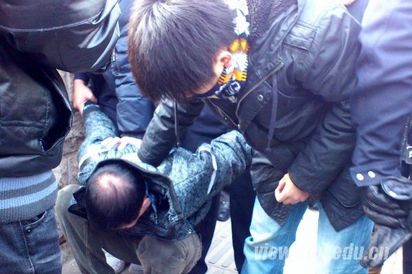 [本站讯]12月12日,在文化西路山东大学附属口腔医院大门前,口腔医学院2008级口腔医学七年制学生蒋礼、贾钊、于连聘、叶阳阳等同学将一名在医院行窃的小偷制服,并扭送当地派出所。