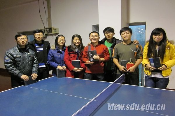 [本站讯]12月3日下午,公共卫生学院暨卫生管理和政策研究中心研究生会在趵突泉校区举行了乒乓球比赛。马东平和王颖分别摘得了男单和女单桂冠,马东平和张国杰、王颖和吕程菲组合分别夺得了男双、女双冠军。