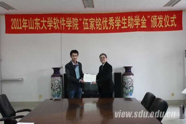 [本站讯]11月10日,Infor大中华区总经理、山东大学软件学院客座教授伍家铭访问软件园校区,为软件学院2010级本科优秀学生颁发助学金人民币25000元,并为本科生作了一场精彩的报告。计算机与软件学院党委副书记贺平出席颁奖仪式并讲话。