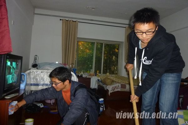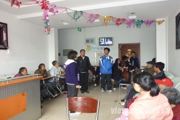 活动中,与工作人员协调后,负责人徐珊将志愿者们分成3组,分别在不同的区域打扫卫生。志愿者们帮老人拖地、擦桌椅、换垃圾袋,为老年公寓的整洁卫生贡献自己的力量。打扫完毕,短暂的休息之后,志愿者们开始为老人们表演节目,欢声笑语充满了整个活动室。在演出中,马守祥等同学为老人演唱了红色歌曲《军中绿花》、《打靶归来》,嘹亮的歌声勾起了一位老人对于军旅生活的回忆。老人给大家讲述了他年轻时代的从军往事,志愿者们对此产生了浓厚的兴趣。业福同学演唱《吻别》,满足了老人们想听流行歌曲的愿望,赢得了阵阵掌声。还有一位老奶奶兴致盎然,献唱一曲《洪湖水》,展现了老人们的风采。临近正午,演出在《感恩的心》手语表演中结束。临行前,敬老院的一位工作人员表示,老人们喜欢热闹,志愿者们的到来带给老人们很多欢乐,希望志愿者能经常开展此类活动。