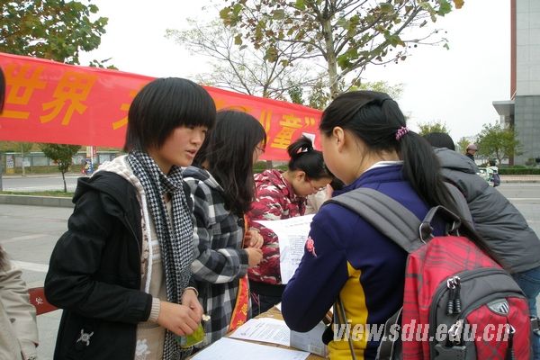 本次活动由青志协会长王善民及各部长组织,青志协成员细致耐心地向路过的同学讲解了活动内容,虽然天气转凉并下着小雨,但这丝毫没影响青志协成员宣传此次爱心活动的热情。同学们在得知此次活动旨在为聋哑儿童送关爱后,对活动表现出了极大的兴趣,踊跃地捐献了各种生活学习用品,如图书、练习本、笔、手电筒及御寒棉衣等。此外,大家还向聋哑儿童送上了温馨的祝福。本次募捐筹集的所有善款和物品将于下周五随青志协成员带往济南市启明聋哑学校,用以捐助学校聋哑儿童。虽然个人的力量是微小的,但汇聚在一起,却如一股暖流温暖人间。