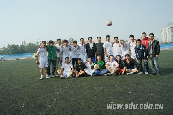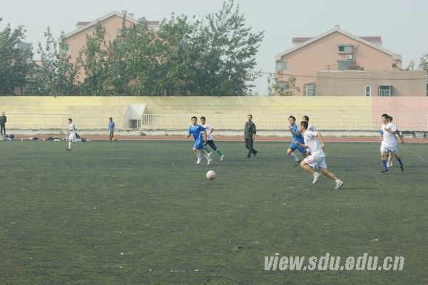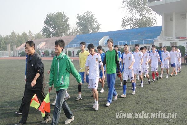[本站讯]10月29日上午,“山大杯”足球冠军赛第七轮在千佛山校区操场举行,体育学院主场迎战材料学院。最终,体育学院夺魁。 上半场哨响,体育学院凭借着高超的技术和默契的配合,迅速掌握了场上的主动权。开场仅两分钟,体育学院8号刘雁飞送出本场比赛第一例精彩进球,取得完美开局。材料学院并没有泄气,在队长的指挥下凭借默契的配合弥补了阵型的缺陷,双方局面一度僵持。体育学院随即加强了进攻,很快控制了比赛的局面,16号李先斌身小灵活速度快,带球长驱直入险些破门。随后,体育学院气势如山洪倾泻一发不可收,精准的传球,娴熟的过人,霸气的拦截,无处不显露出对冠军的渴望。第18分钟,18号许江城拿球撕破对方防线抽射破门。激动还未平息,刘雁飞一记头球命中再送一球,两例进球仅仅相隔两分钟。第33分钟,9号张龙在混乱中抽射命中。上半场,体育学院4:0领先。下半场,体育学院熟悉了材料学院的战术配合,没有给对方任何射门的机会,稳稳掌控了比赛局面。陈琪攀、李先斌、张龙、牟广森等依靠出色的个人能力和配合,在对方门前狂轰乱炸,最终22号球员田珂鑫一粒头球入网,5:0锁定胜局。