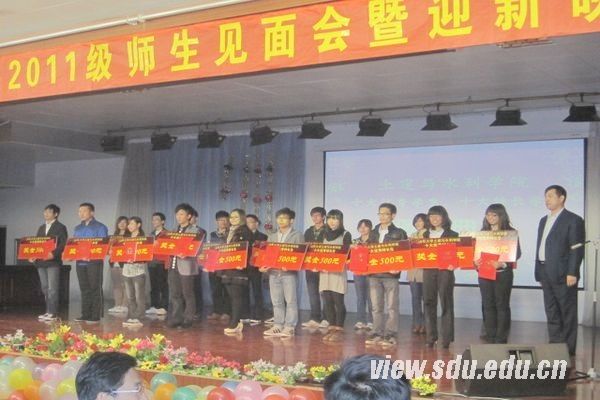 [本站讯]10月30日晚,土建与水利学院2011级新生师生见面会暨迎新晚会在兴隆山校区举办。山东智邦工程改建加固总公司总经理胡正亮,土建学院98级校友、鑫富泰国际集团执行总裁刘伟应邀出席晚会。土建学院领导班子全体成员参加活动。 师生见面会由院党委副书记孙玉玲主持,学院领导班子成员、学院老师、2011级新生班主任和新生依次见面。见面仪式结束后,土建学院院长、长江学者李术才致辞,他简单介绍了学院历史、专业设置、教学资源、师资队伍、杰出校友等情况。他谈到,土建学院将秉承“求实创新、至臻卓越”的院训,以整体国内一流、优势学科国内知名为发展目标,明确教学创新、科研创新、人才发展、文化创新、管理创新的战略,坚持四种经历的本科生培养模式,加强国际合作与交流,注重对学生人格体系和知识体系的双重培养,朝国际化的方向不懈努力。他勉励新生要开阔视野、提高眼界,文理综合学习,健全心理,以兴趣为前提,以信心勇气为动力,以奉献社会为目的,坚持正派作风,敢想敢做,为了自己的远大理想而努力奋斗。 随后,迎新晚会在劲爆的热舞中开场。美妙的歌声、精彩的舞蹈使整场晚会激情十足,高潮迭起。《海阔天空》、《Innocence》等歌曲打动人心,震撼全场;爵士舞《look》热辣动感,舞蹈《万佛朝东》幽默风趣,藏族舞蹈《青春踢踏》不仅饱含民族特色,还将青春气息体现的淋漓尽致;快板书《三打白骨精》、小品《大话西游》以经典搞笑的台词赢得观众的喜爱;青志协将“奉献•友爱•互助•共进”写进情景剧,更有手语表演扣人心弦,感人至深;2011级新生辅导员王旭东与学生联袂演唱的《老男孩》尽展青年教师风采;师生互动游戏环节,班主任与学生互相配合,在有限的时间内尽力把更多的乒乓球送到舞台对面,趣味十足的小游戏拉近了师生关系,更有师生用家乡话共同演绎经典台词,搞笑的表演将现场气氛推向高潮。在晚会中,还进行了“智邦杯”十大优秀学生、十大优秀特长生的颁奖仪式和“鑫福泰创新与实践奖学金”的颁奖仪式,胡正亮为学院十大优秀学生、十大优秀特长生颁发了智邦奖学金,刘伟为第十二届“挑战杯”全国大学生课外学术科技作品竞赛一等奖团队代表颁发了鑫福泰奖学金。 晚会在歌曲《感恩》中落下帷幕,师生见面会暨迎新晚会为2011级新生和学院领导、老师提供了一个交流的平台,增进了师生之间的感情,丰富了新生的大学生活,成为全体新生心目中美好的定格。