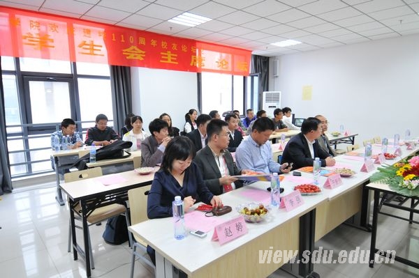 论坛上,1985级校学生会主席、山东省人民政府研究室刘险峰,1986级院学生会主席、山东大学经济学院徐涛副教授,1989级校学生会副主席、院学生会主席、淄博市国家税务局刘普照,1989级贸易系学生会主席、山东天诚投资管理有限公司于新伟,1993级院学生会主席、中国邮政储蓄银行山东省分行李强,1997级院学生会主席、山东省农业厅王哲,全国学联副主席、1997级校学生会主席、中化化肥有限公司刘杰,1998级院学生会主席、上海市国家会计学院赵婷,1998级院学生会素拓部部长、山东省发展和改革委员会王栋,1998级院学生会学习部部长、济南住房公积金管理委员会卢修明,1999级院团委副书记、院学生会执行主席、长春体彩管理中心张达前,1999院团委副书记、院学生会副主席、北京协和医院何平,2000级院学生会主席、中国农业银行吴斌先后发言。他们纷纷表示很荣幸能参加此次论坛,肯定了学院这一创新之举,同时向母校110周年校庆表示了祝贺,对学院所取得的成绩感到自豪和骄傲,并向母校汇报了各自工作情况并宣读了论坛宣言。