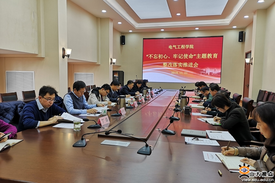 [本站讯]11月21日下午,电气学院领导班子召开“不忘初心、牢记使命”主题教育整改落实推进会。学校主题教育第三指导组组长史永志、副组长江红、成员郭迪到会指导。电气学院党委书记刘相宜主持会议。
