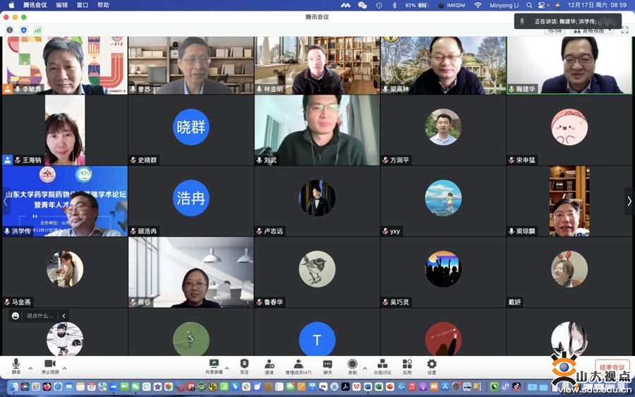 [本站讯]12月17日,由药学院主办的药物分析高端学术论坛暨青年人才托举沙龙在线上顺利召开。浙江大学教授曾苏、清华大学教授林金明、武汉大学教授洪学传、清华大学教授梁琼麟、东南大学教授梁高林、海军军医大学教授陈啸飞、厦门大学教授吴彩胜共7位国内药物分析专家学者作专题报告。药学院院长鞠建华致开幕词,副院长李敏勇、院长助理王海钠分别主持论坛。