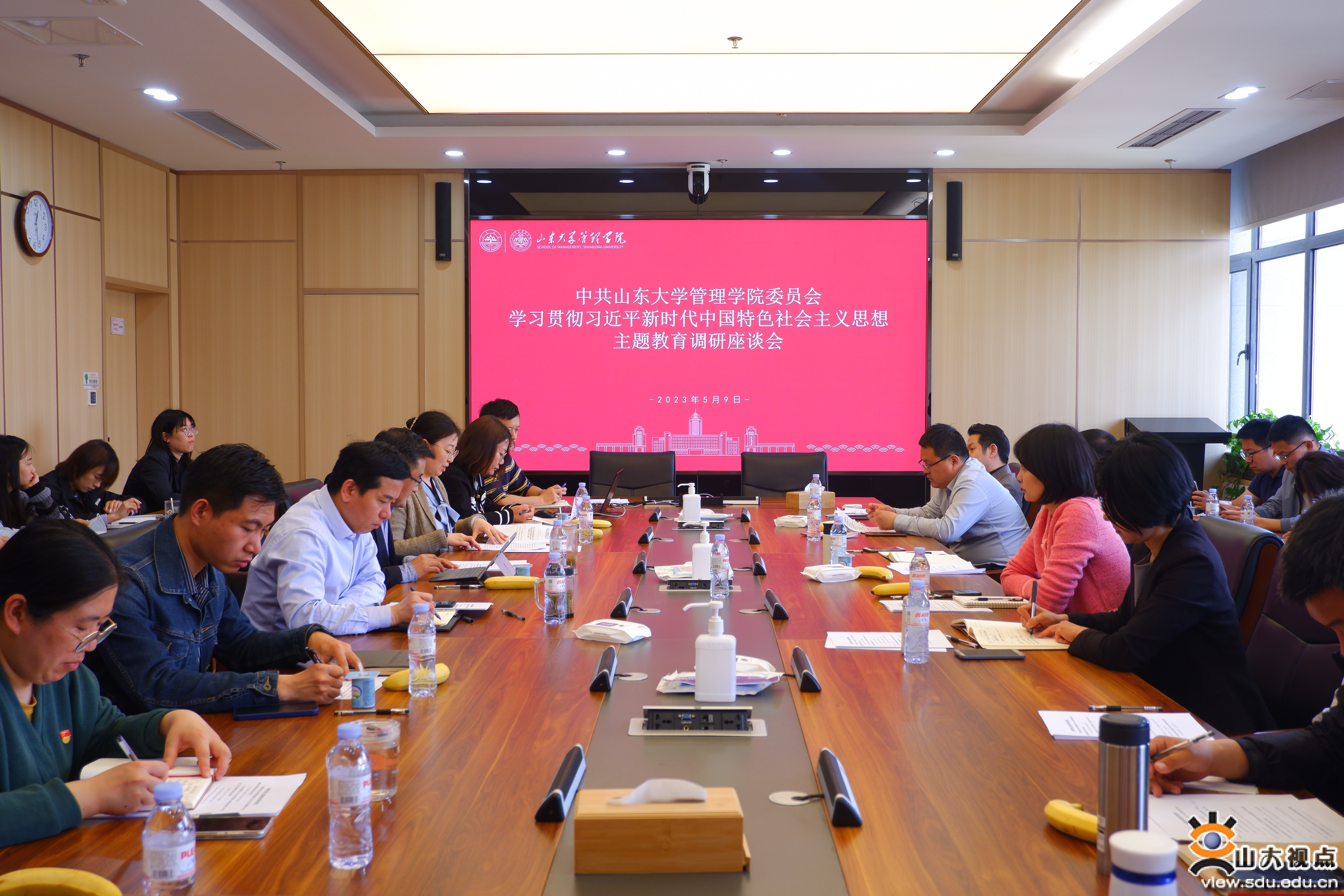 [本站讯]5月9日,管理学院召开学习贯彻习近平新时代中国特色社会主义思想主题教育调研座谈会。与会人员围绕学校党委确定的六类调研问题,紧密结合主题教育要求和学院改革发展的难点、堵点和师生关心的热点,对学院高质量发展提出意见建议。