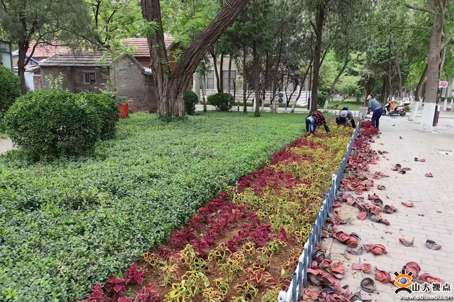 绿化景观补种升级。落实“环境育人”举措,积极开展校园绿化、美化工作,进一步改善校园绿化环境。及时修剪楼宇周围绿化带,进行杂草清理和补苗;开展盆花修枝整形,对校门口等重点区域进行绿化整翻、移栽;合理选定区域,补种马兰花、彩叶草等植物。