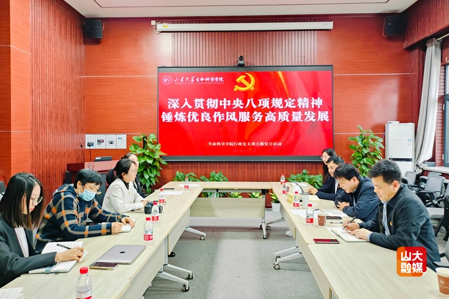 [本站讯]4月11日,生命科学学院行政党支部开展“深入贯彻中央八项规定精神,锤炼优良作风服务高质量发展”主题党日活动。山东大学党委常委、党委宣传部部长张帅出席活动并与支部党员座谈交流。