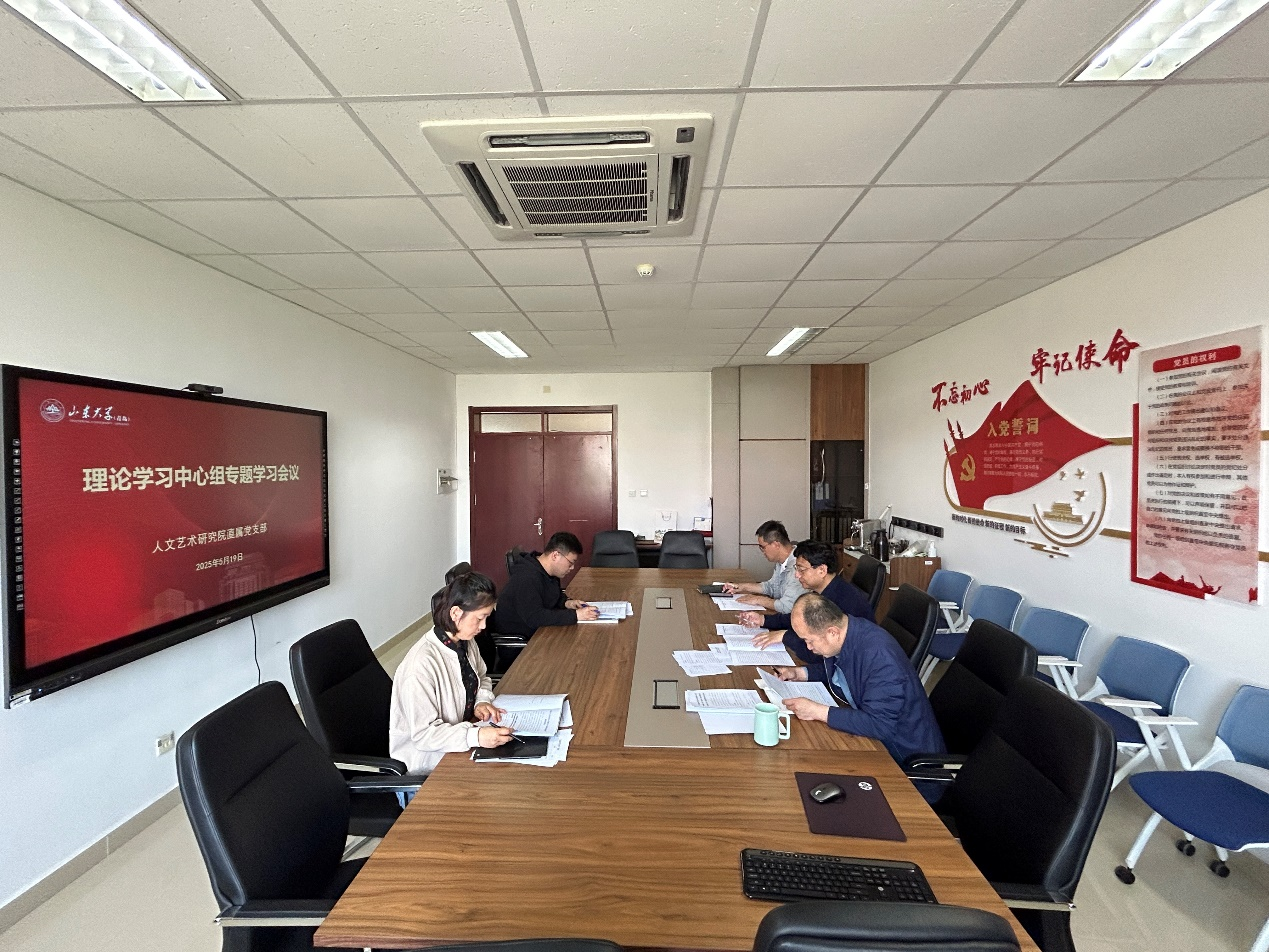 [本站讯]5月19日,人文艺术研究院理论学习中心组召开会议,深入学习贯彻习近平总书记关于加强党的作风建设的重要论述,专题学习《党的十八大以来深入贯彻中央八项规定精神的成效和经验》《八项规定改变中国》两篇文章。山东大学校长助理、青岛校区党工委书记、研究院直属党支部书记邢占军主持会议。