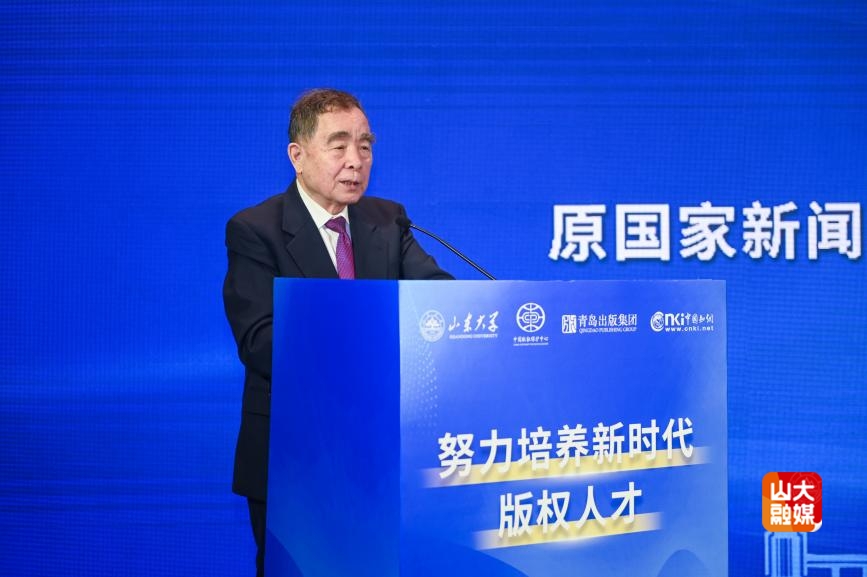 第十二届全国人大教科文卫委员会主任委员,原国家新闻出版总署署长、国家版权局原局长、清华大学新闻与传播学院原院长柳斌杰作题为《数智时代:版权创造与版权人才培养》的主旨报告。