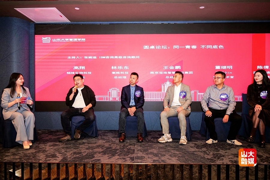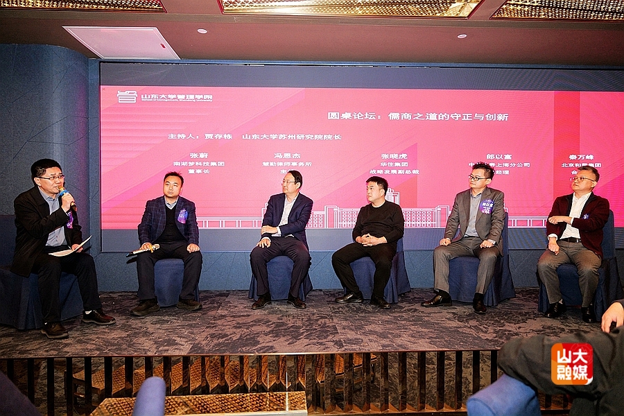 丁荣贵全面梳理了学院发展历程与建设成果,围绕学院未来发展的核心战略作专题报告。在圆桌论坛环节,大会先后聚焦“儒商之道的守正与创新”“不同青春,同一底色”两个主题,邀请校友代表共同探讨传统文化与现代管理的融合之道,讲述不同年代的成长故事。