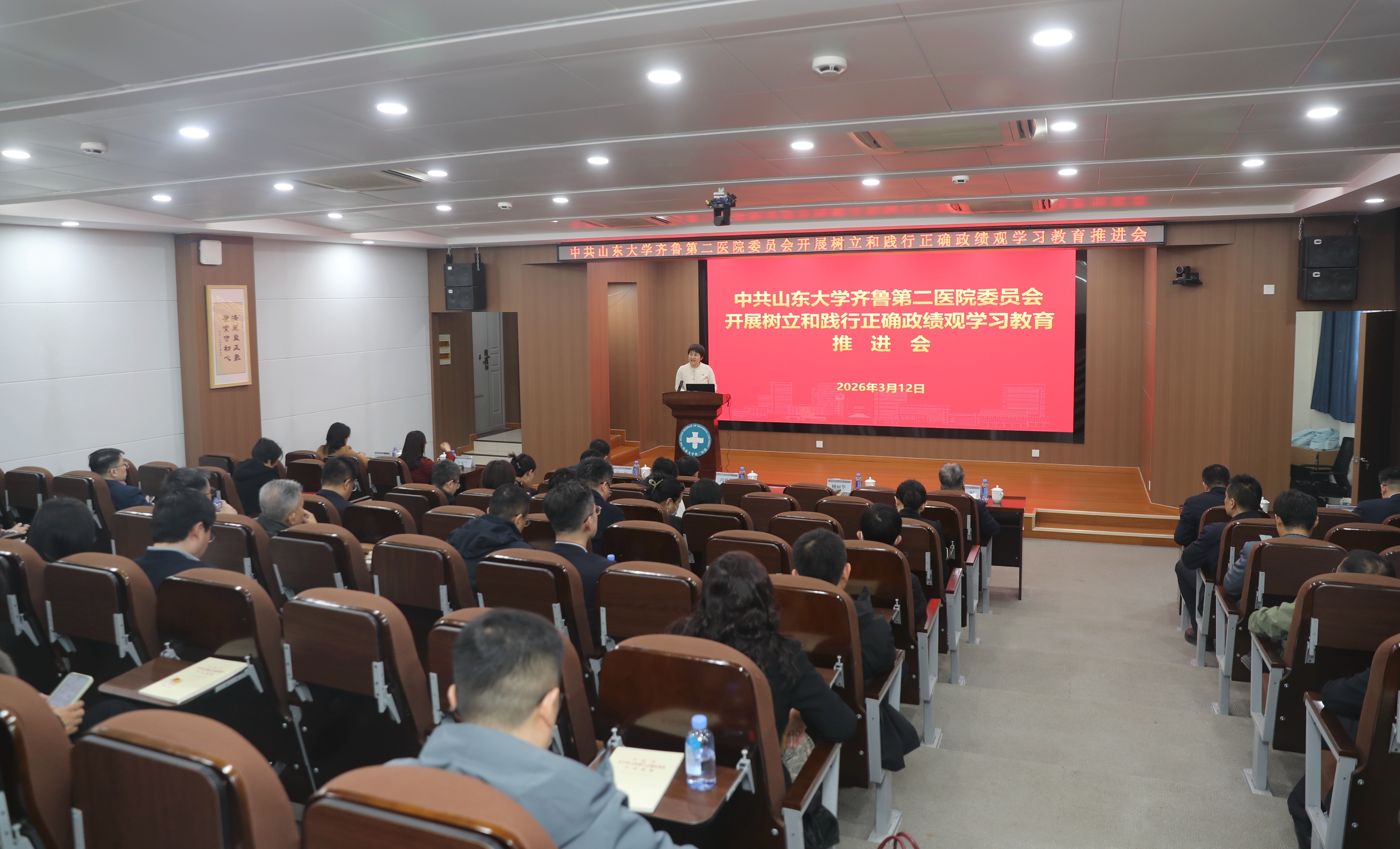 [本站讯]3月12日,山东大学齐鲁第二医院召开党的建设工作领导小组(扩大)会议暨树立和践行正确政绩观学习教育推进会,紧扣“立党为公、为民造福、科学决策、真抓实干”总要求,推动全院党员干部把思想和行动统一到党中央的决策部署上来,以正确政绩观引领“新二院”时代高质量发展。